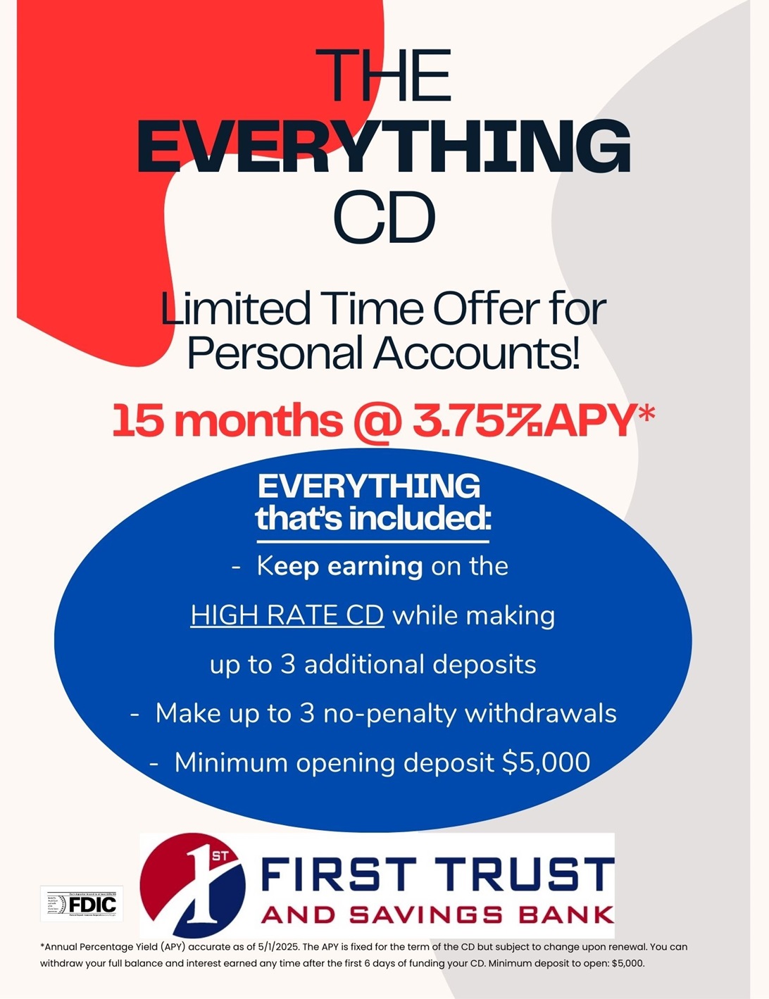 The First Trust & Savings Bank is now on Facebook! Look for fun facts, tips on saving and budgeting, and more. Get to know us better and see how we give back to the communities we serve.